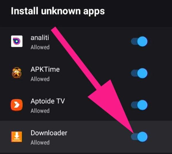 Now you will see list of your Android apps. From that list find “Downloader” application. Select it and press “Enter” or “OK” button to allow access.