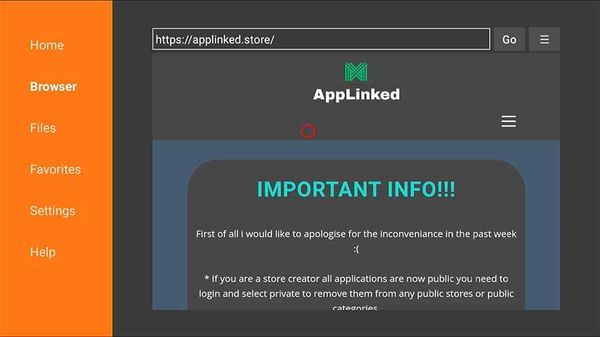 Step 3: Download and Install Applinked app on FireStick/FireTV. Open Downloader app and type “https://applinked.org/applinked.apk”. It will start the downloading process. Once the download has finished, tap on the APK file and install the application