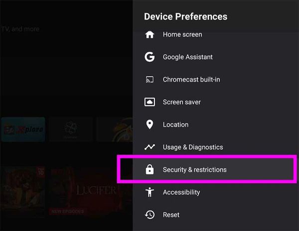 From the list appeared, scroll and find “security & restrictions”. Select it.