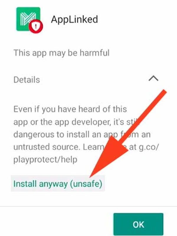 Go to “Details” like on above picture. Then Select and click on “Install anyway (unsafe)” button.